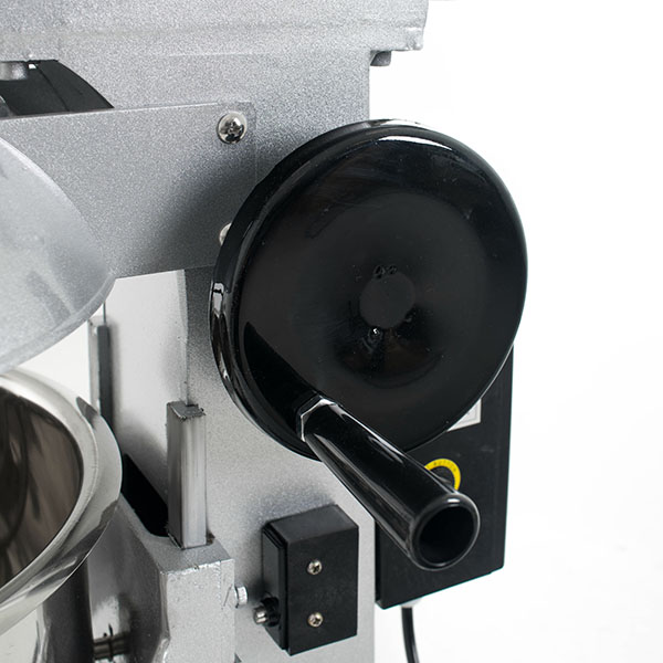 - Удобство загрузки и выгрузки. Дежа перемещается по вертикальным направляющим с помощью рукоятки, фиксируясь в крайних положениях ограничителями. Это позволяет быстро снимать ёмкость и добавлять ингредиенты.
